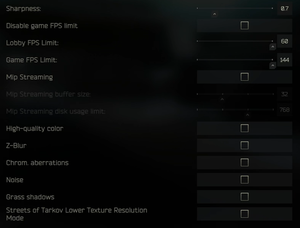 Streets of Tarkov Lower Texture Resolution Mode - Turn on only if you get bad performance on the Streets of Tarkov map specifically.